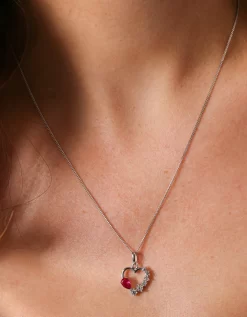 The Love Silver Collection Sterling Silver Created Ruby & Cubic Zirconia Heart Pendant Necklace