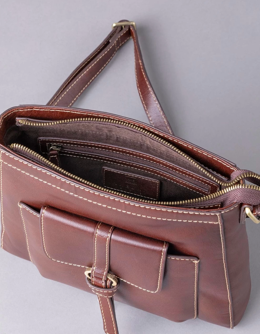 Crafted using a high-quality rich and sturdy brown leather and with a spacious zipped main compartment, the Birthwaite large leather cross body bag has a zip and slip pocket inside to keep your going-out essentials safe and organised.