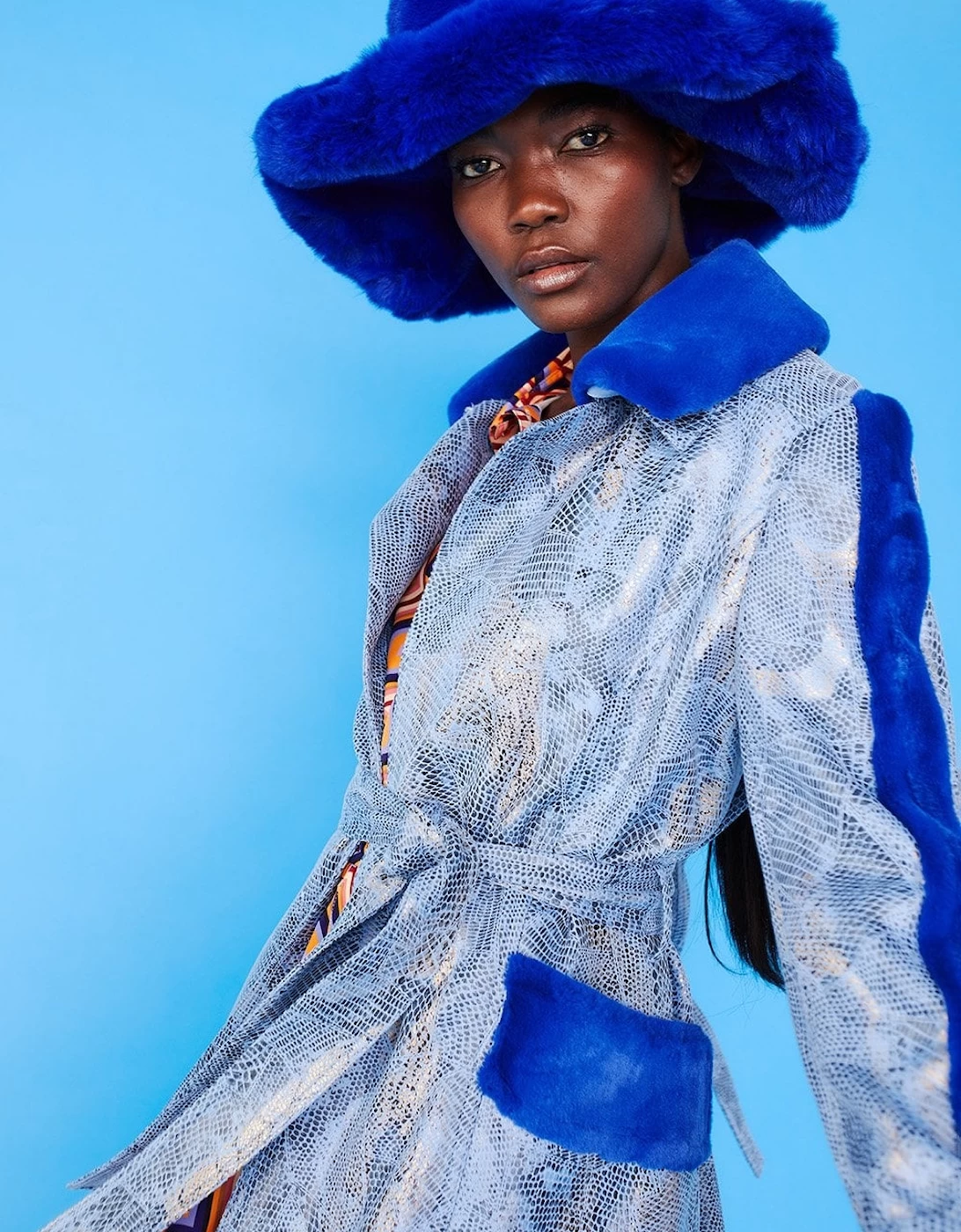 Blue Faux Fur Oversized Hat