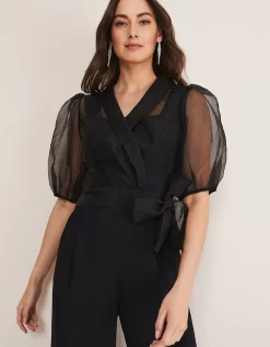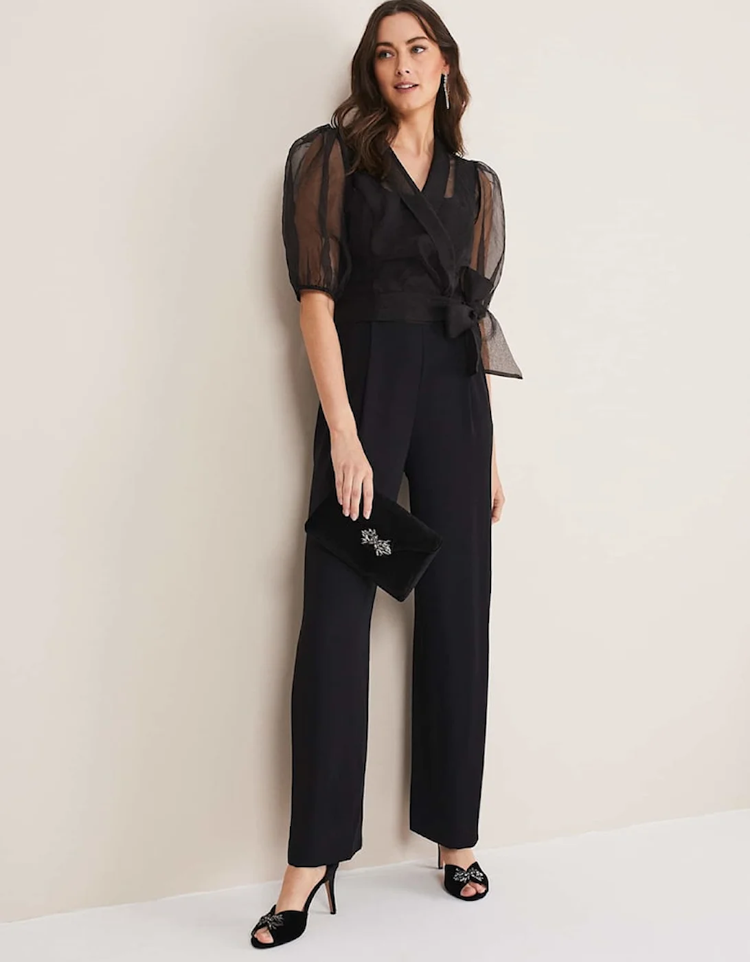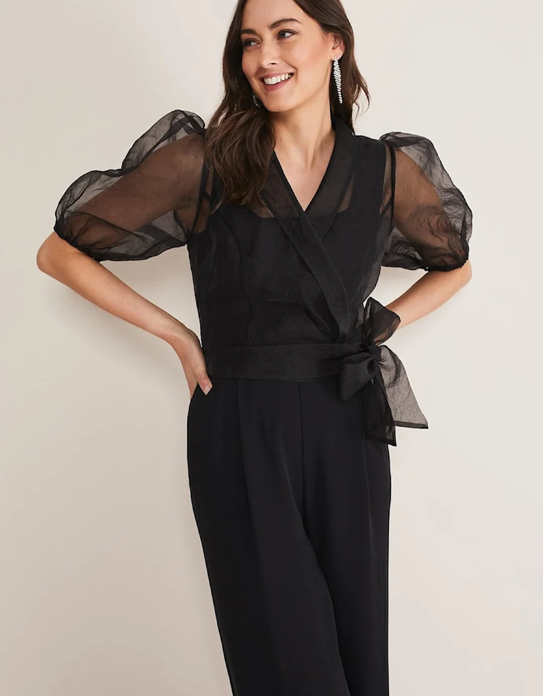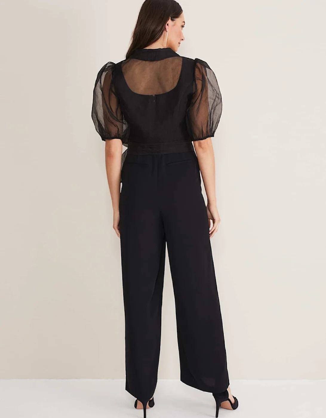 One of our much-loved occasion styles in a brand new colourway. Our black Brontie Jumpsuit is framed by oversized sheer puff sleeves and falls to a wide leg silhouette. It’s a statement style that will look great at every special occasion. Model wears UK Size 10 and is 5’9/175cm Regular Fit