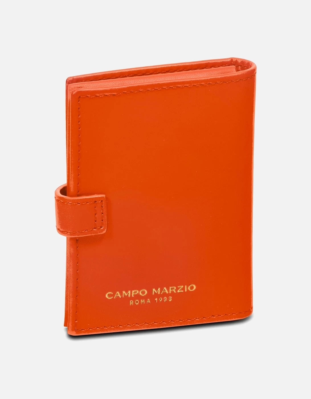 Romy is an elegant business card holder made in high quality coloured leather with a comfortable value closure. Small and practical to carry with you everyday, convenient for storing more than one business card. Elegant business card holder available in many colors. Convenient metal value in gold or silver color. Can accommodate several business cards. Dimensions: 10 x 7 x 2 cm. Materials: Leather.