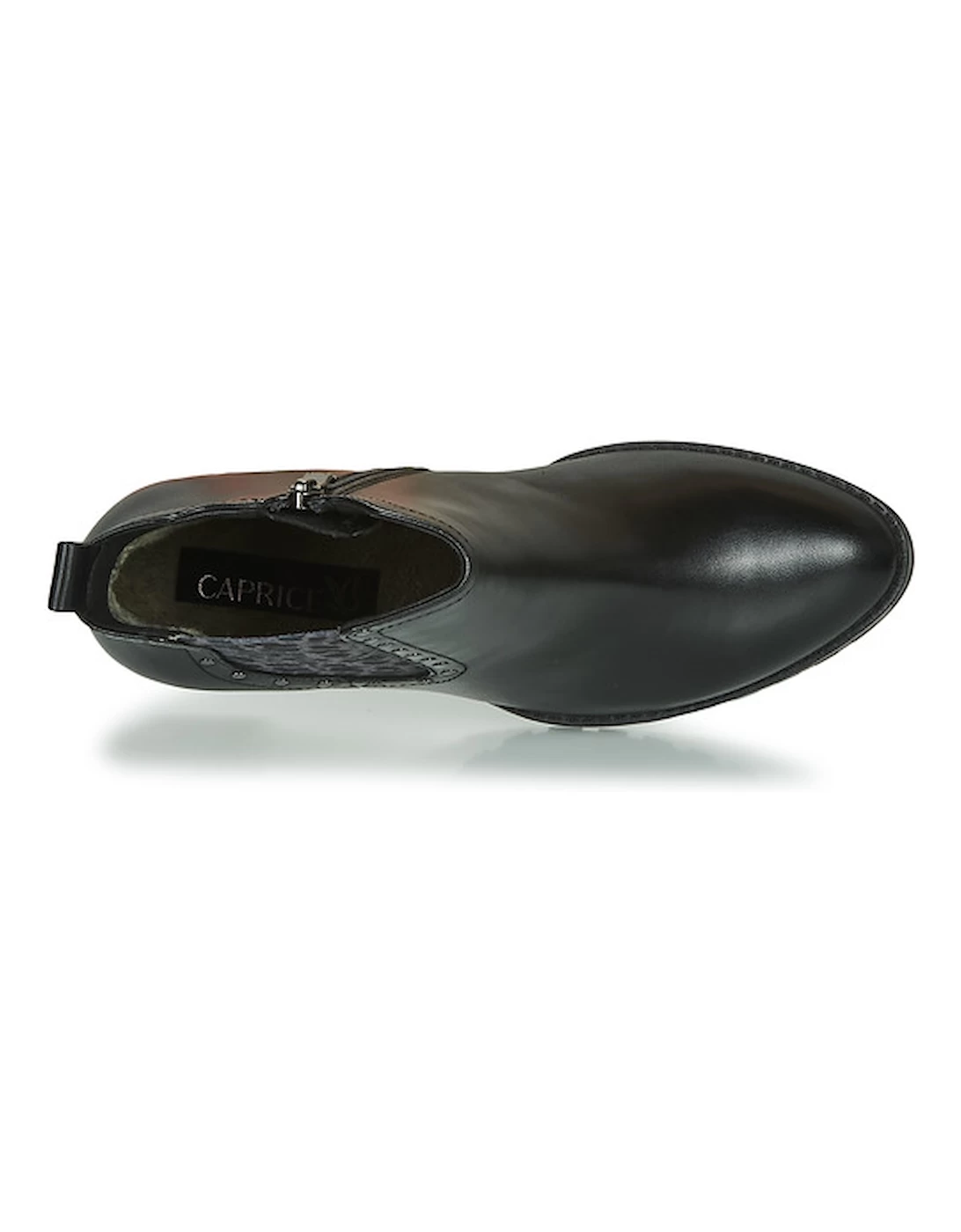 You won’t be able to resist these lovely black ankle boots! They feature a leather upper and a synthetic outer sole. A high heel confirms what we already knew: it’s flawless. Caprice shows off that they know what they are doing with the little details!