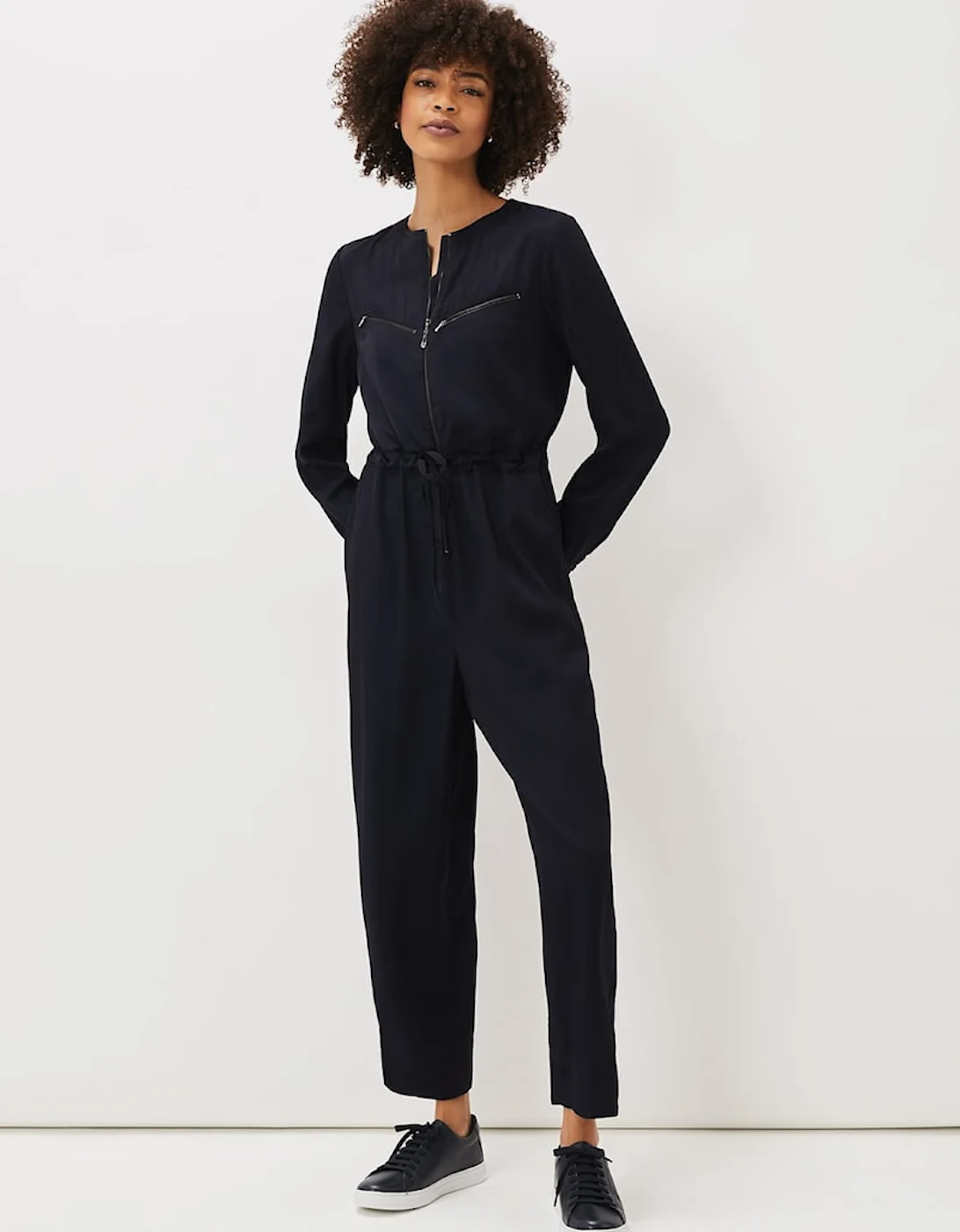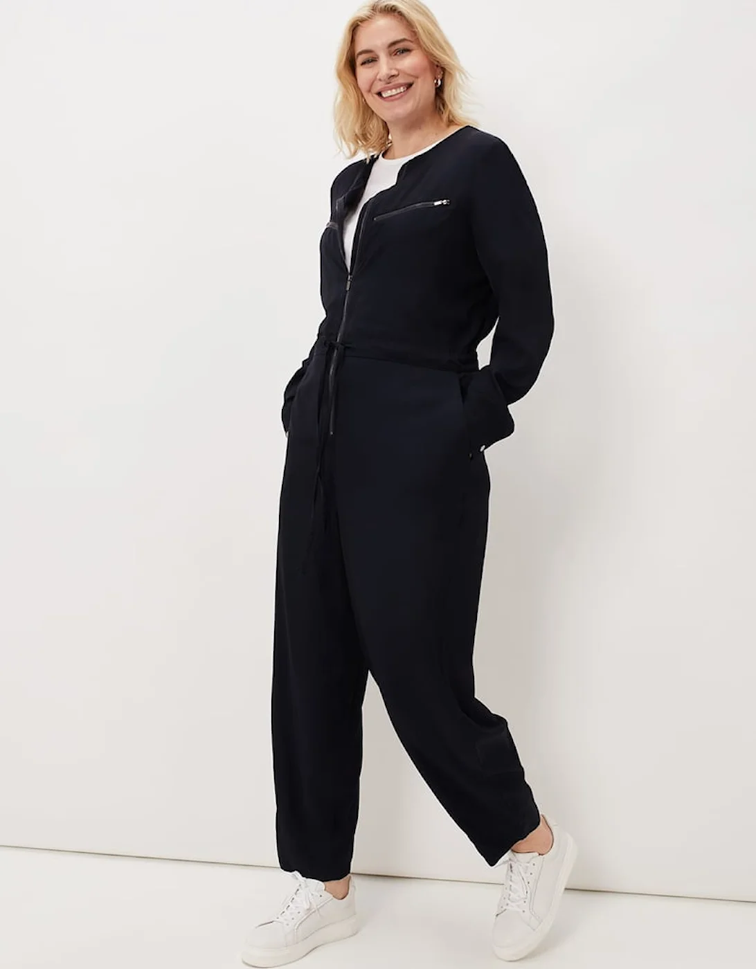 The ultimate combination of relaxed style and round-the-clock comfort, our Duna Jumpsuit is ideal for lounging around the house or casual day to day wear. Designed in a easy-to-wear fit, this soft style features a zip front, zip up pockets on the bodice and falls into a relaxed straight leg fit. A drawstring waist for added definition finishes the look. Model wears size 16 and is 5’10 / 178cm Regular Fit