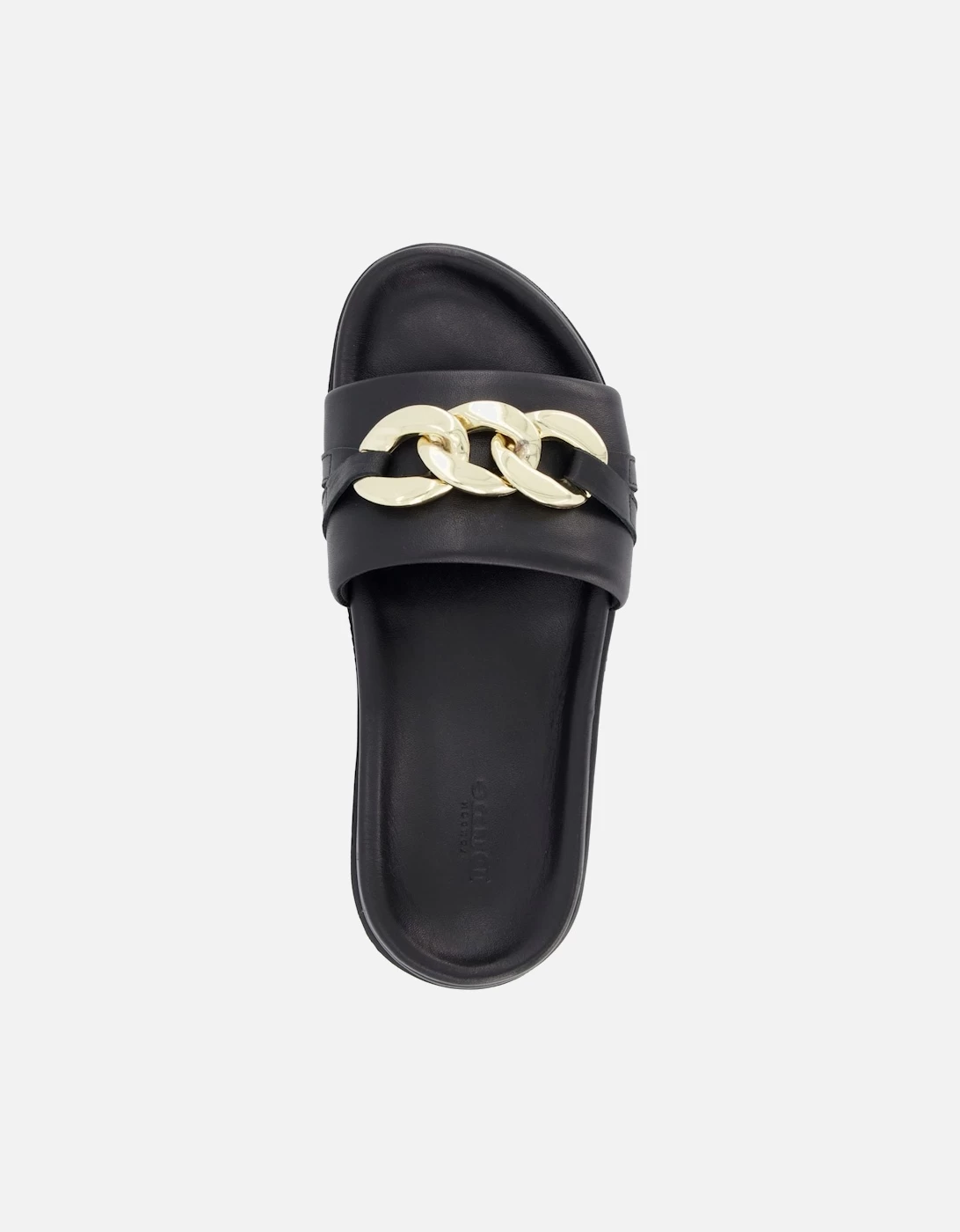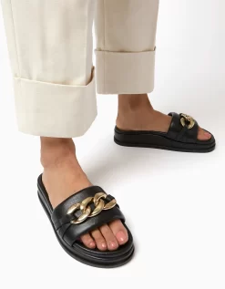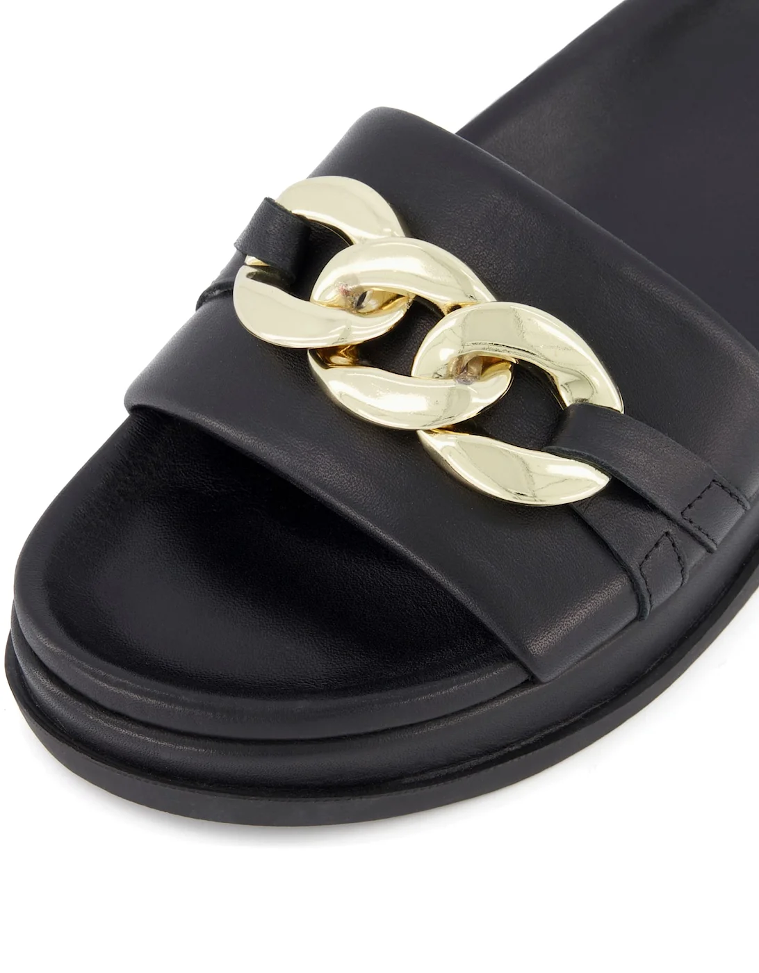 Press refresh on your seasonal wardrobe with these slides. They’re topped with a chunky gold-tone chain for maximum effect. Made from smooth leather the moulded footbed offers a comfortable fit., Material: Leather.