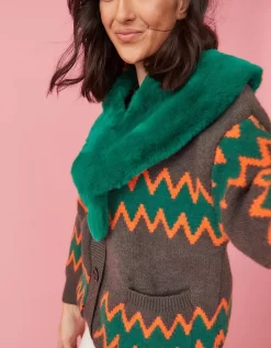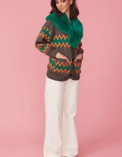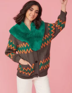 We love the zigzag design of our cashmere-blend cardigan! It has a super soft construction with long sleeves, values and a detachable faux fur collar.