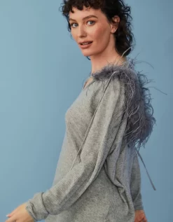 Grey Cashmere Blend Hooded Jumper With Feathered Hood