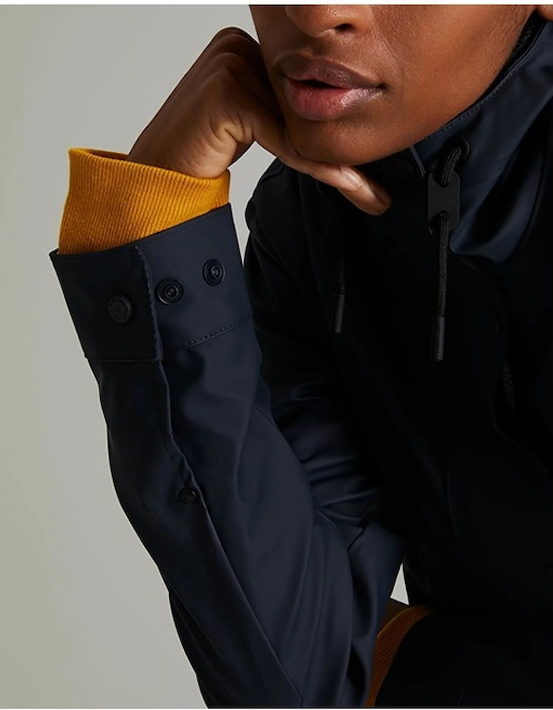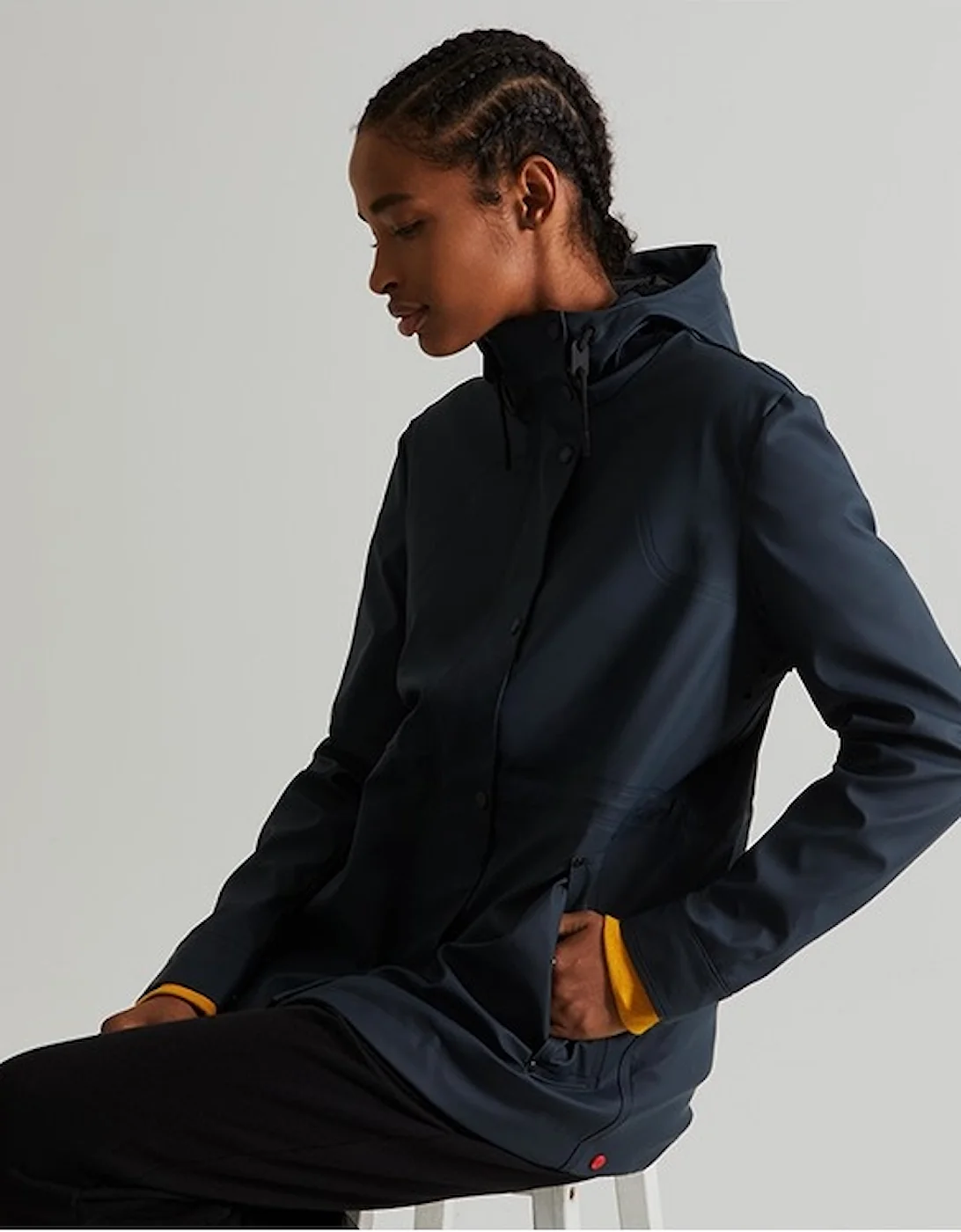 Waterproof without the weight, get on-board with the updated lightweight rubber. A festival essential, this classic navy fully waterproof jacket features a welded seam construction and storm flap closure for superior protection. An open back vent and full mesh body lining offer breathability, while the adjustable waist ensures a comfortable fit.
