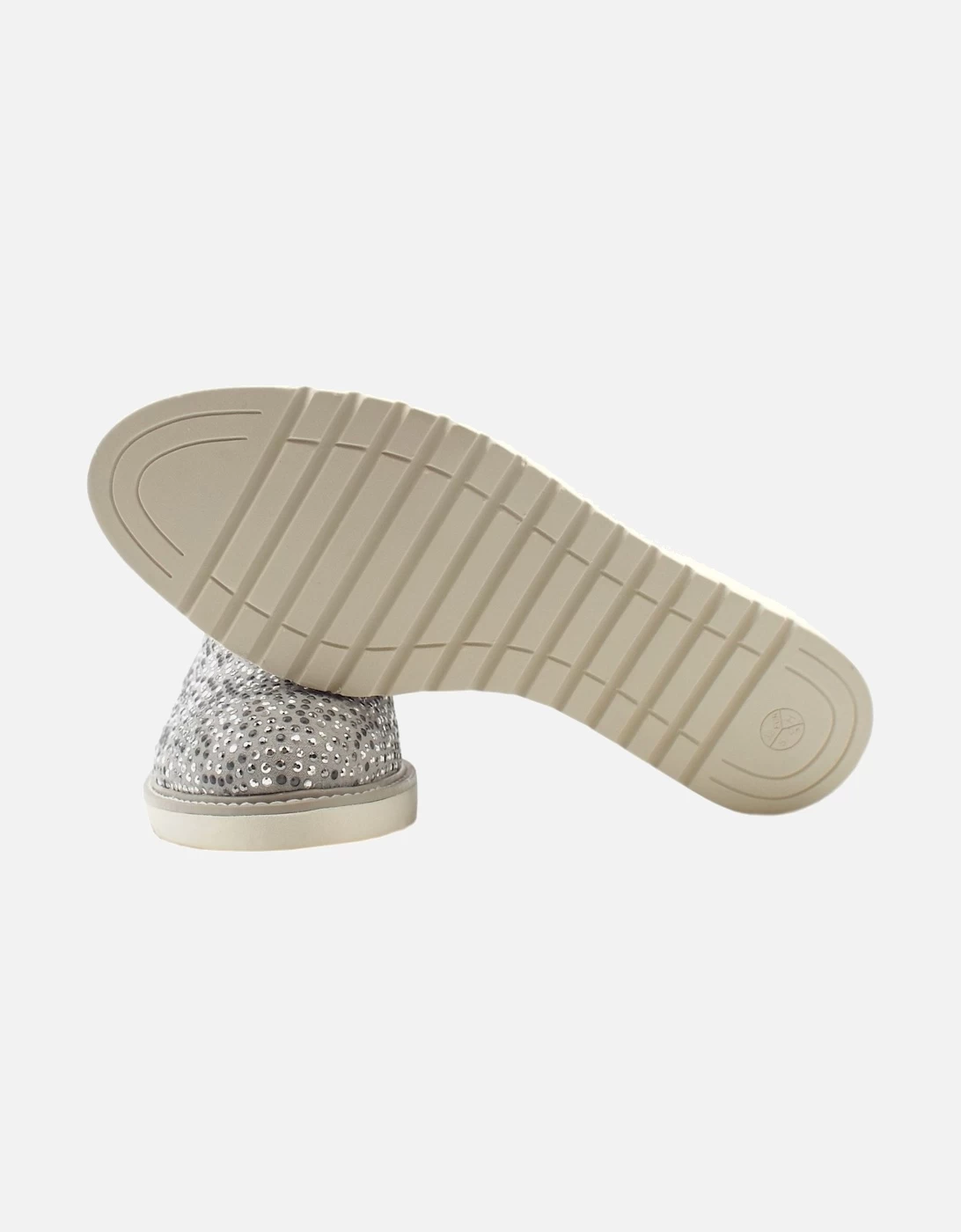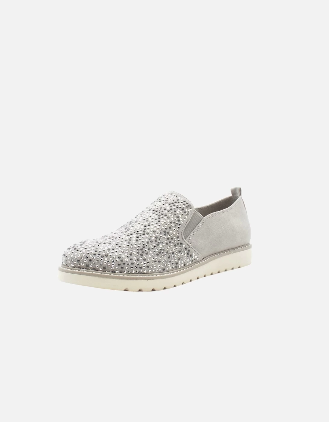 Jana Josie – women’s sparkly sporty wide fit loafers in light grey – fun and fabulous wide fit summer sneakers in grey with crystals covered front.