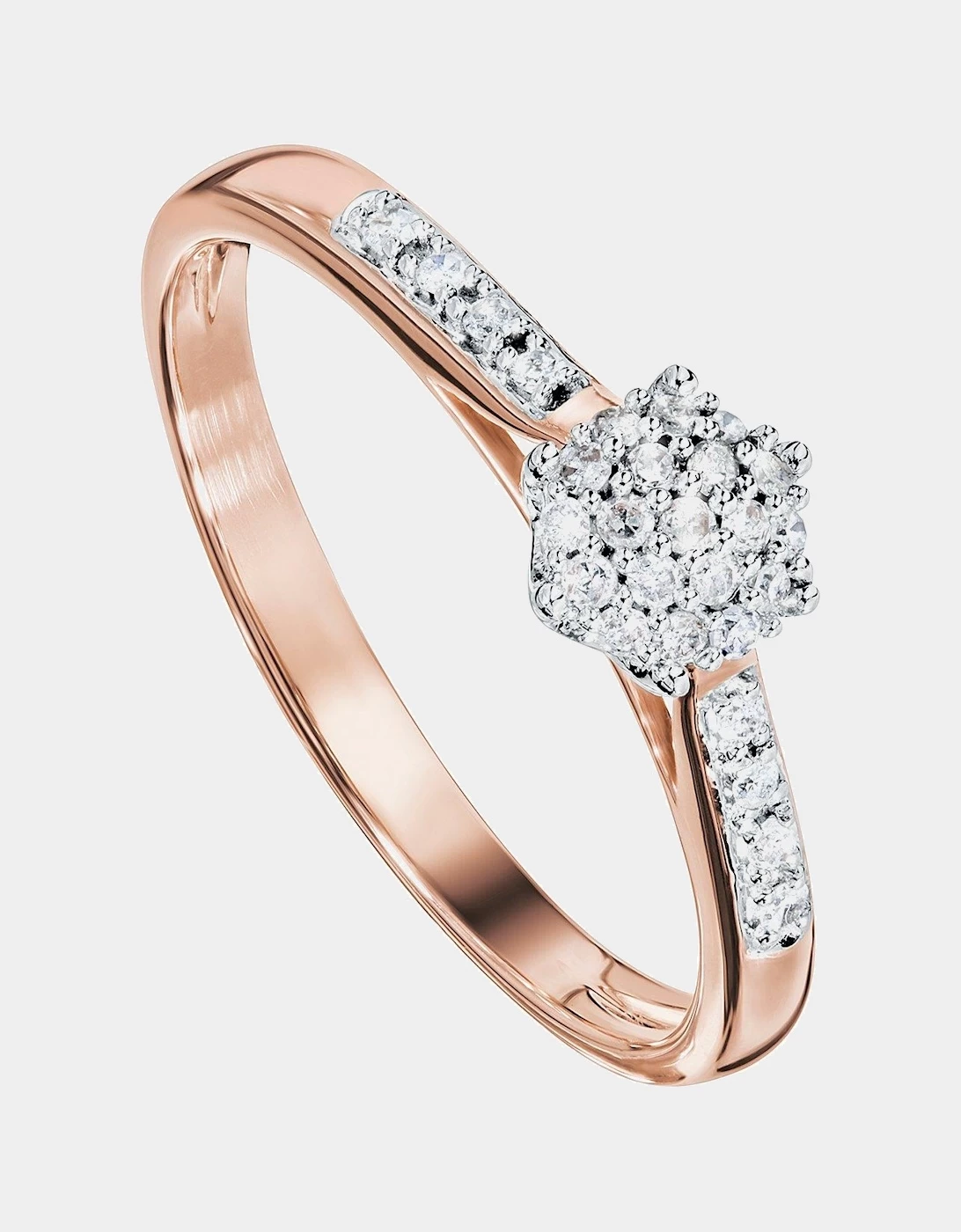 Love DIAMOND 9ct Rose Gold 10 Point Diamond Cluster Engagement Ring