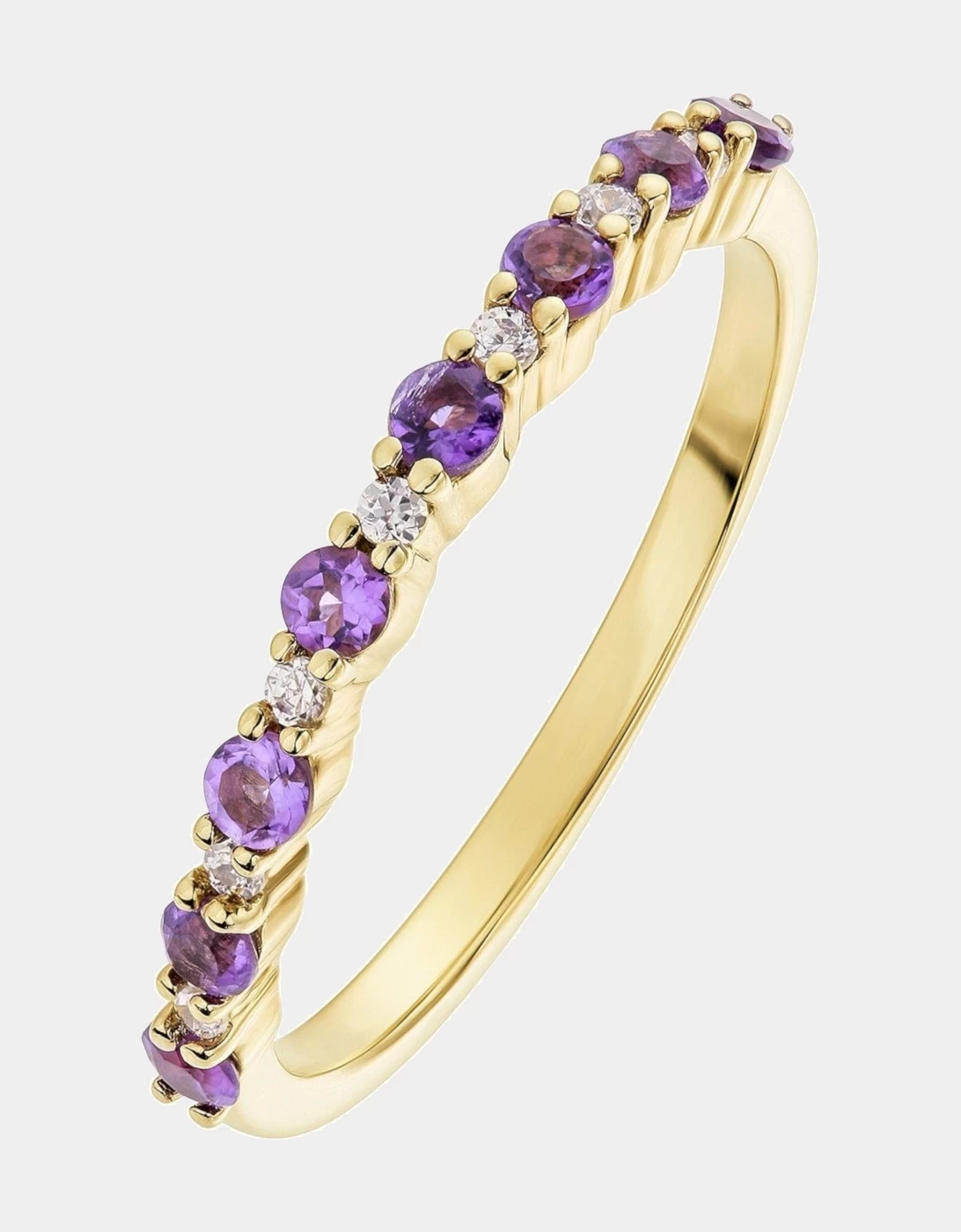 Love GEM 9ct Yellow Gold 2mm Amethyst And Diamond Half Eternity Ring