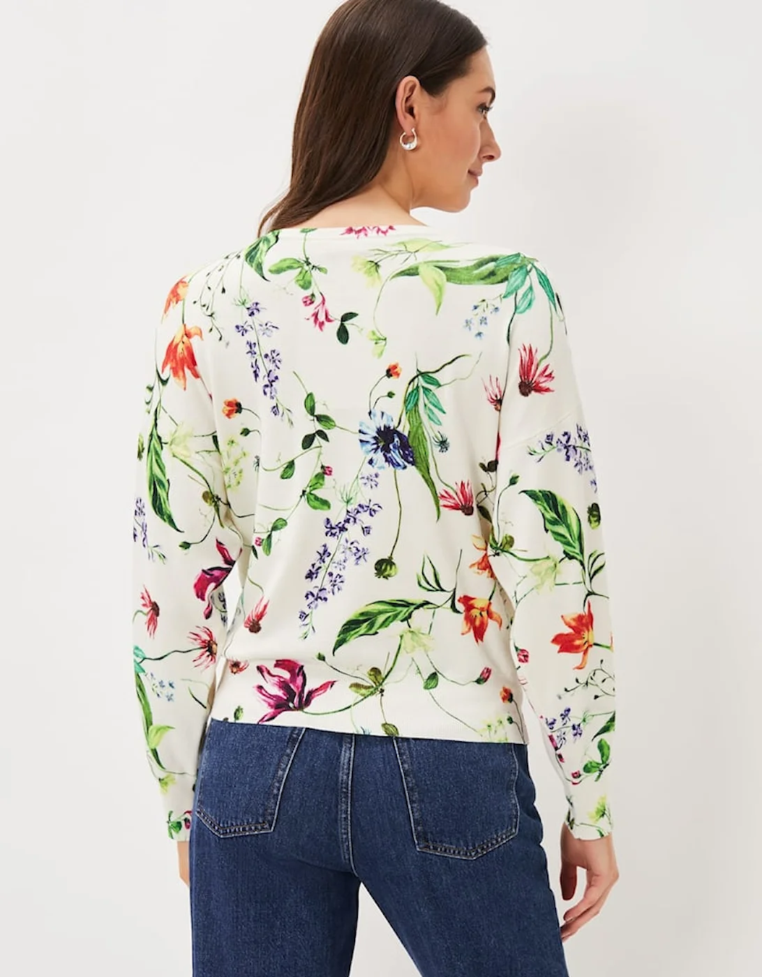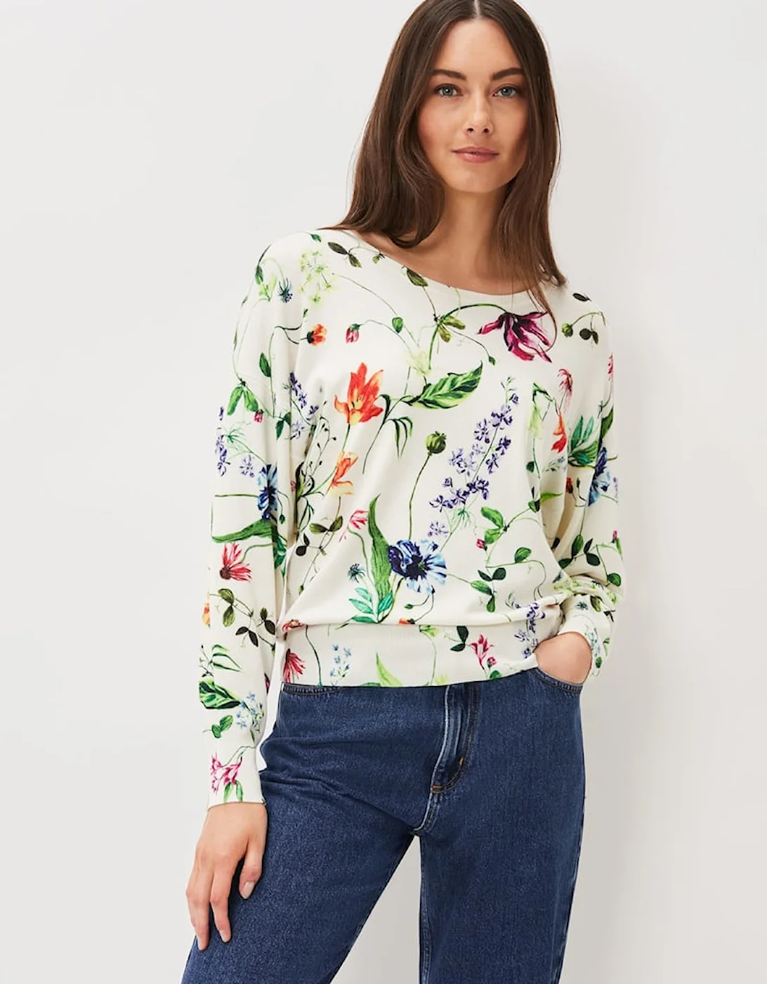 The perfect jumper to brighten up your wardrobe. Designed in a bright white shade our Mably jumper features a delicate floral print. Wear with jeans for a casual look. This style is responsibly sourced. This style has been made from certified renewable wood sources. LENZING â„¢ ECOVERO â„¢ viscose uses a responsible production process, generating up to 50% lower emissions and water impact than generic viscose. LENZING â„¢ and ECOVERO â„¢ are trademarks of Lenzing AG. Find out more about the sustainable fibres we source here . Model wears UK Size 10 and is 5’9/175cm Regular Fit