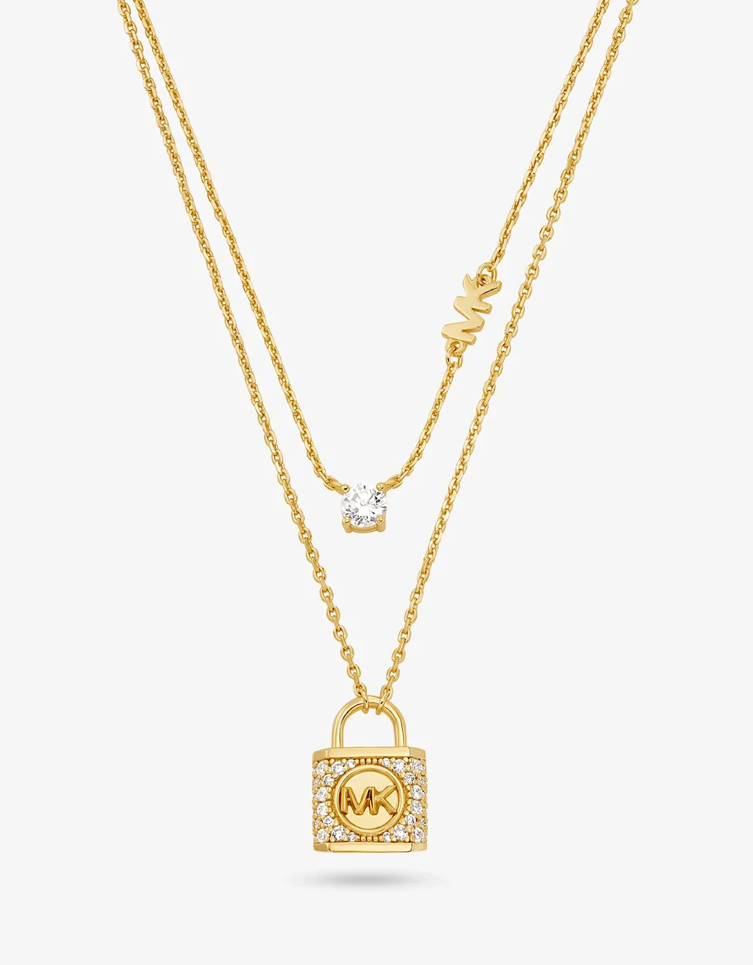 Michael Kors Precious Metal-Plated Sterling Silver Pavé Lock Layered Necklace