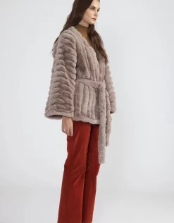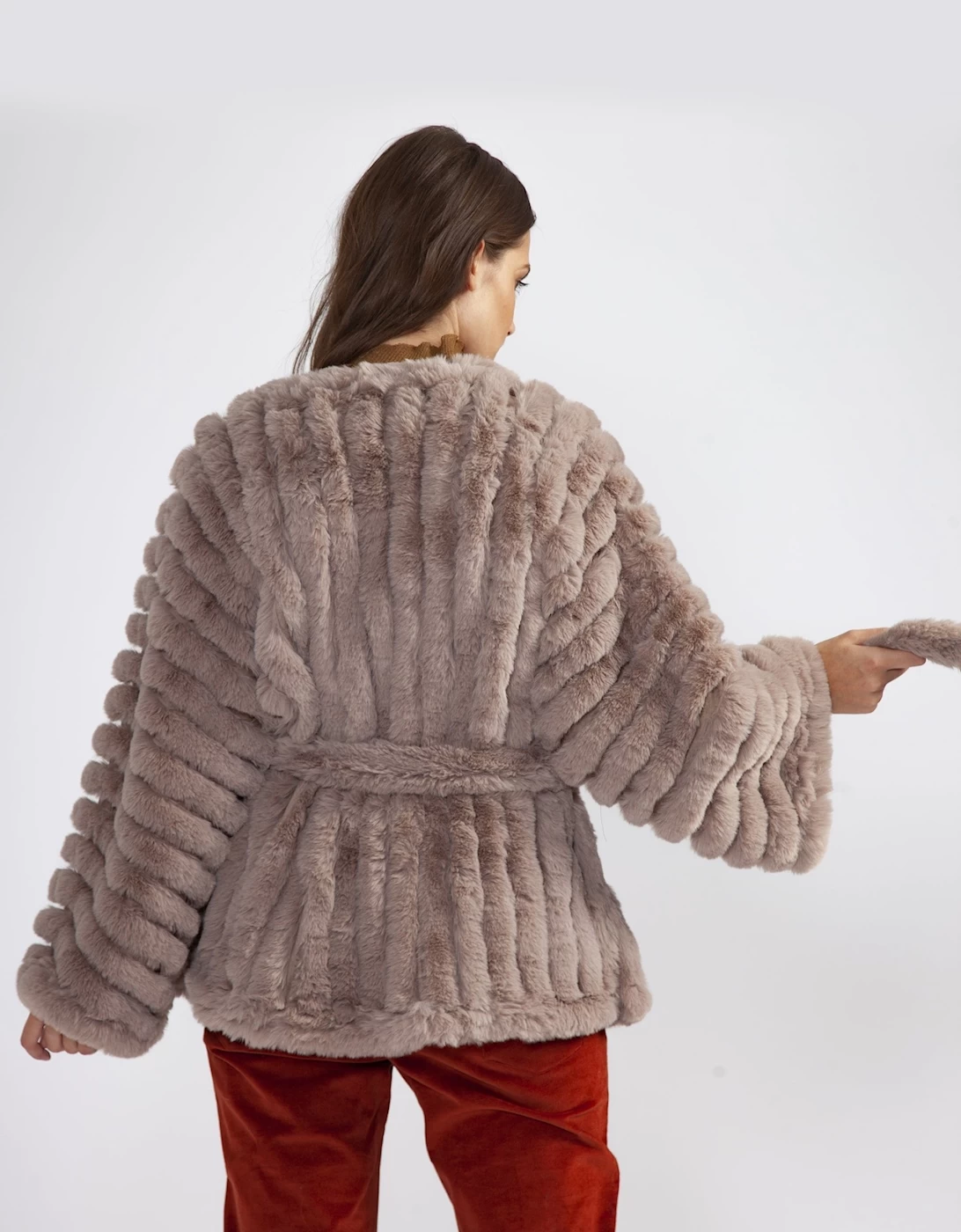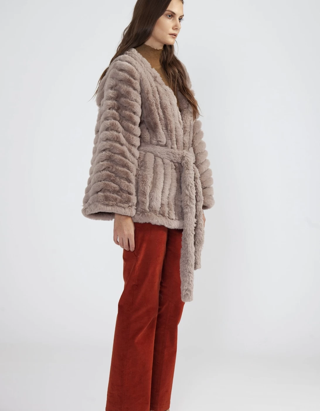 This faux fur kimono style wrap jacket is crafted from our incredibly soft range of faux fur. Made for ultimate comfort this jacket features a belted waist to accentuate your figure. Pair with your favourite slim trousers and boot heels.