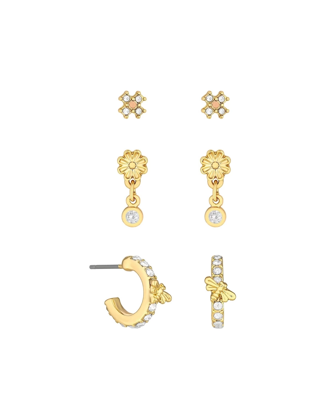 Mood Gold Crystal Charmed Nature Mixed Earrings – Pack Of 3