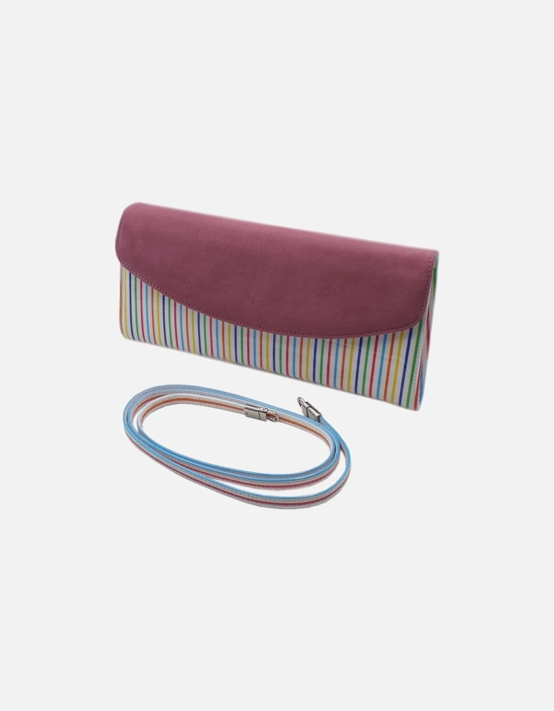 Peter Kaiser Liv – clutch bag in White Linea – evening clutch bag in a patent stripe leather with contrasting cassis suede.