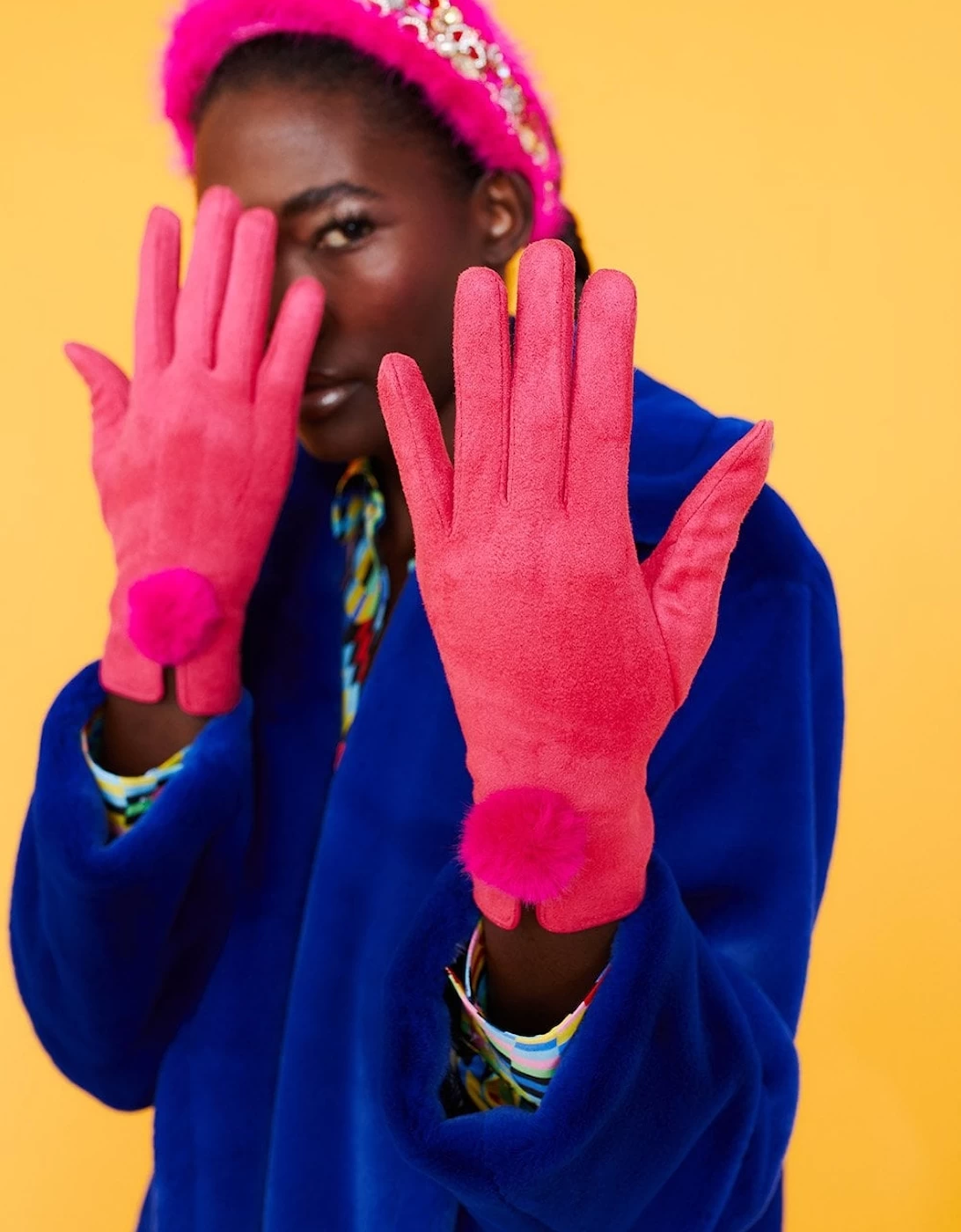 Beautiful soft feel sumptuous faux suede gloves, featuring a faux pom pom, will easily become a statement piece in your wardrobe.
