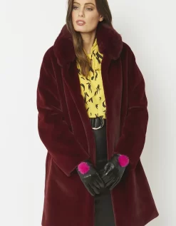 Lambs Leather Gloves Faux Fur Pom Pom