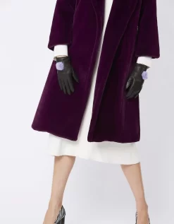 Purple Lambs Leather Gloves Faux Fur Pom Pom