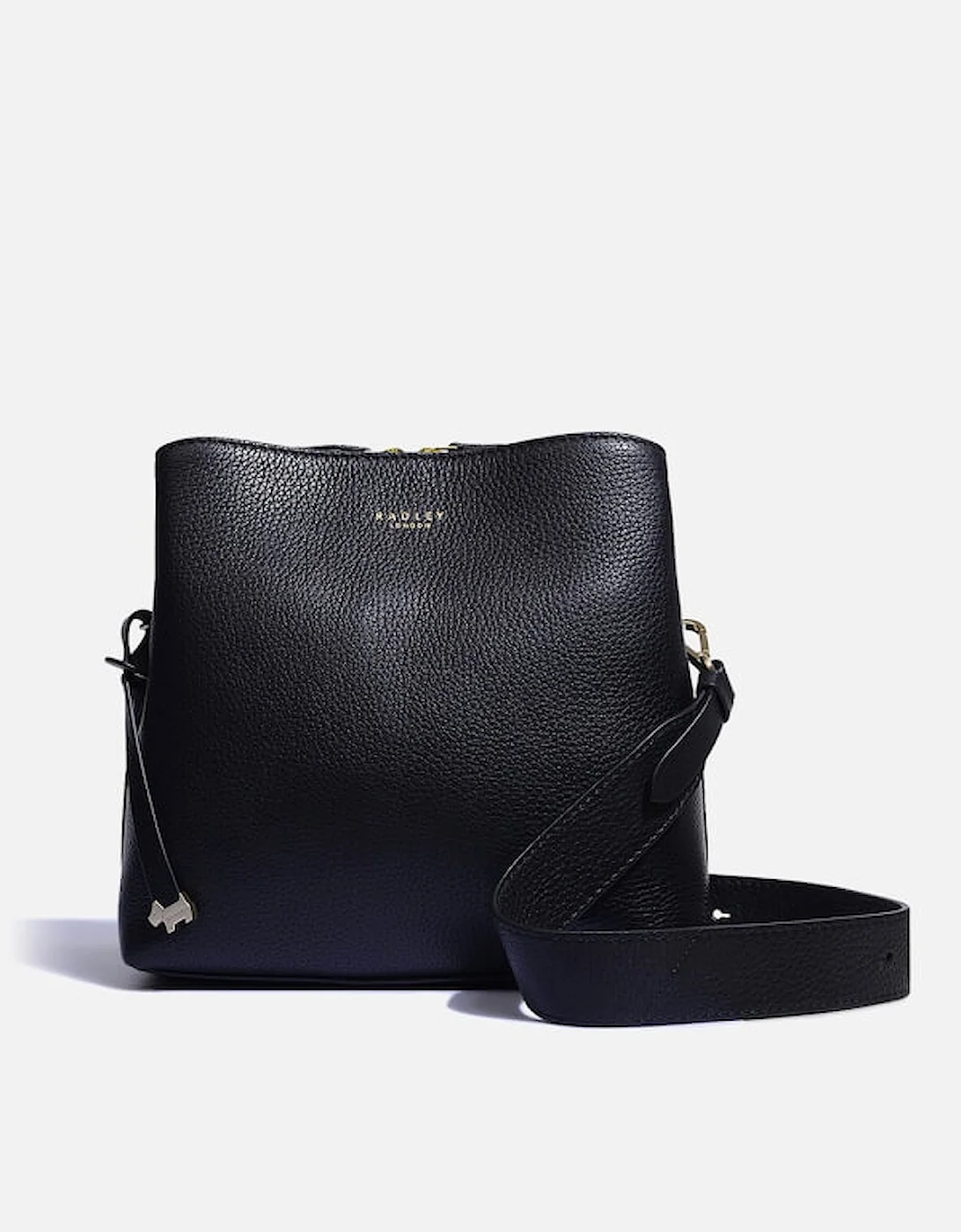 This leather bag from Radley is a versatile option for daily use. The adjustable shoulder strap allows it to be worn as a cross-body, while the interior zipped central compartment and front and back press-stud compartments offer easy organisation. The minimalist design also features a gold-tone Scottie dog charm.