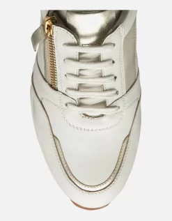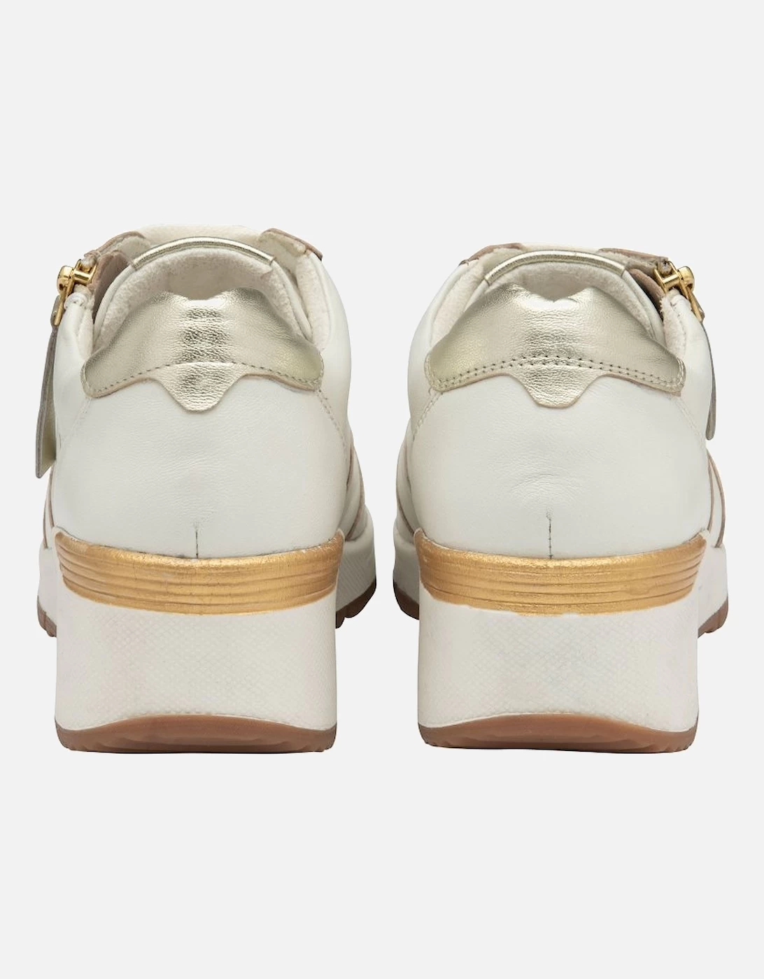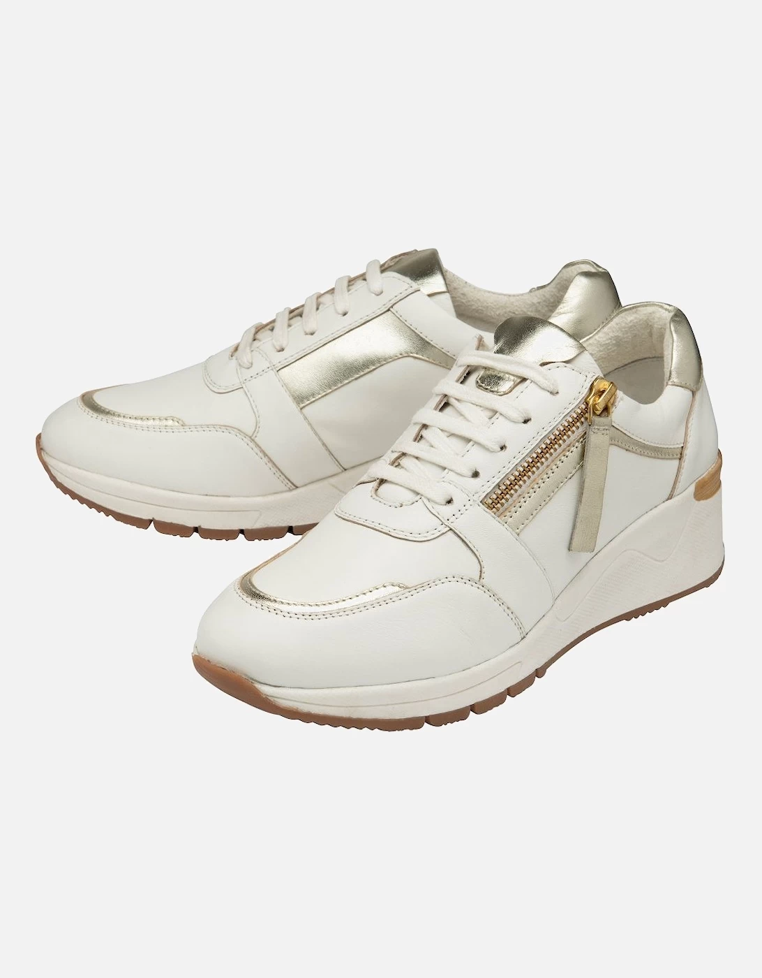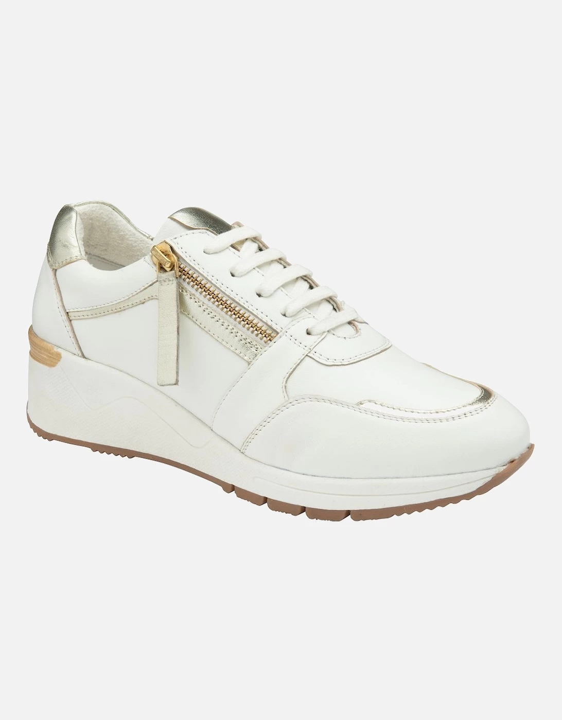 Stand out this summer in the Ravel Sint trainer. Secured with a lace fastening, Sint features metallic detailing on the toe cap, tongue and heel tab, plus it is finished with a zip feature on the side. The Ravel Sint trainer boasts a classic round toe and sits on an on-trend 5cm wedge heel.