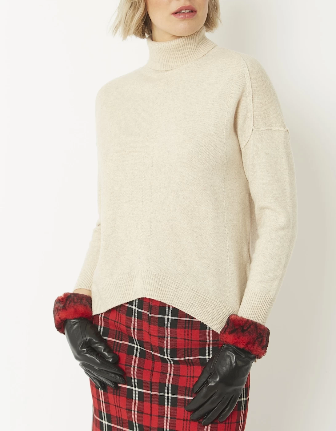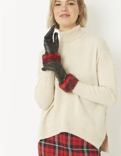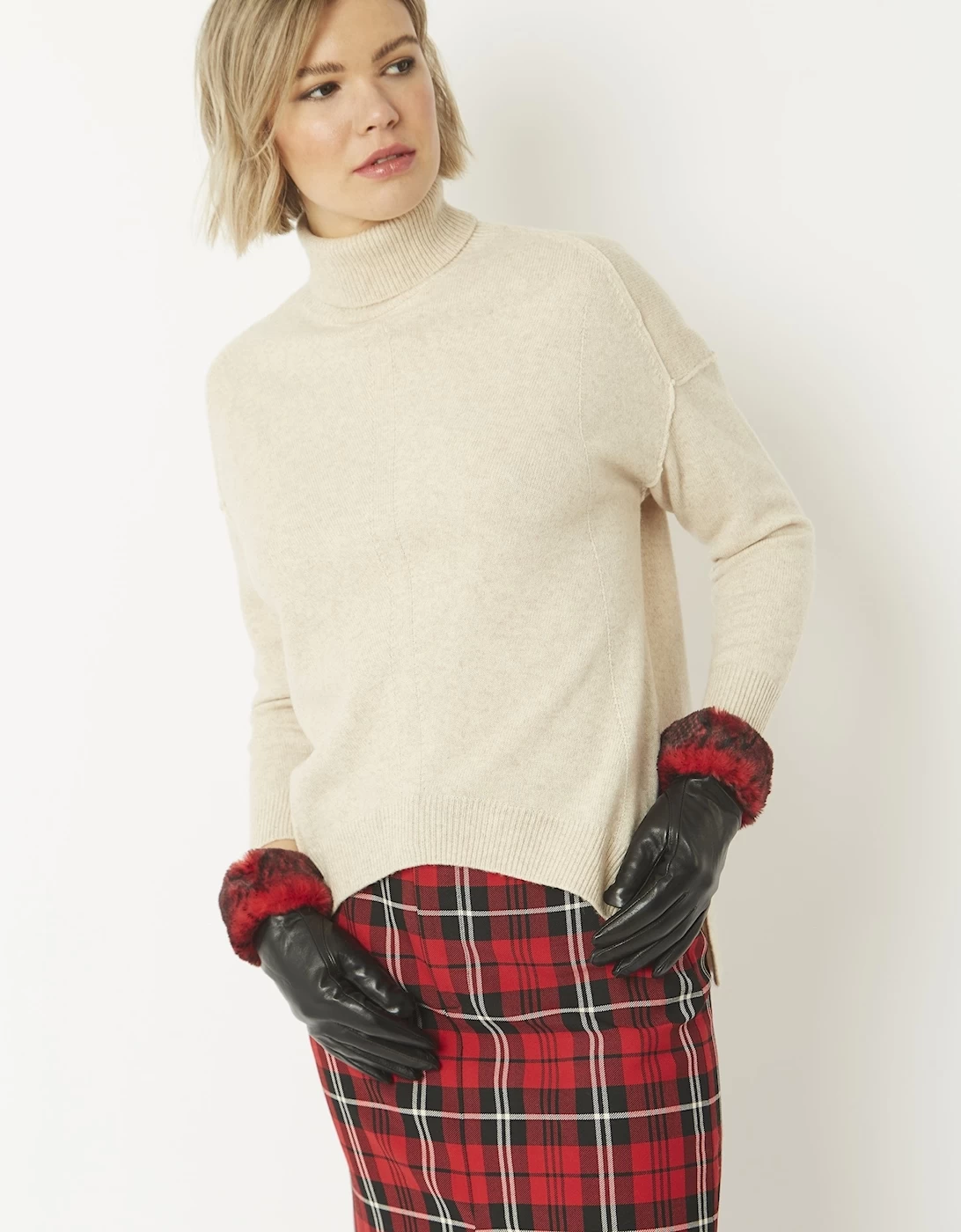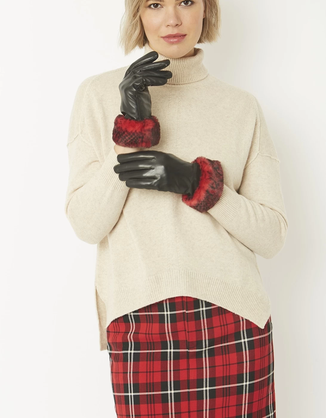 Keep fingers toasty on the morning commute with these smart leather gloves with luxuriously soft faux fur trim.