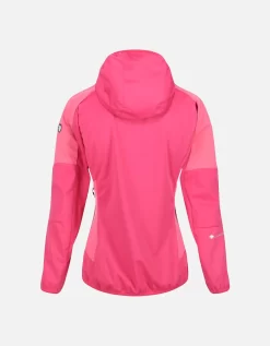 Material: 100% Polyester. Fabric: Softshell. Design: Colour Block, Logo. Badge. Fabric Technology: Breathable, Lightweight, Moisture Control, Stretchable, Waterproof, Wind Resistant, XPT. Neckline: Hooded. Sleeve-Type: Long-Sleeved. Cuff: Stretch Binding. Hood Features: Grown On Hood, Stretch Binding. Pockets: 2 Side Pockets, Zip. Fastening: Contrast Zip, Full Zip. Hem: Stretch Binding.