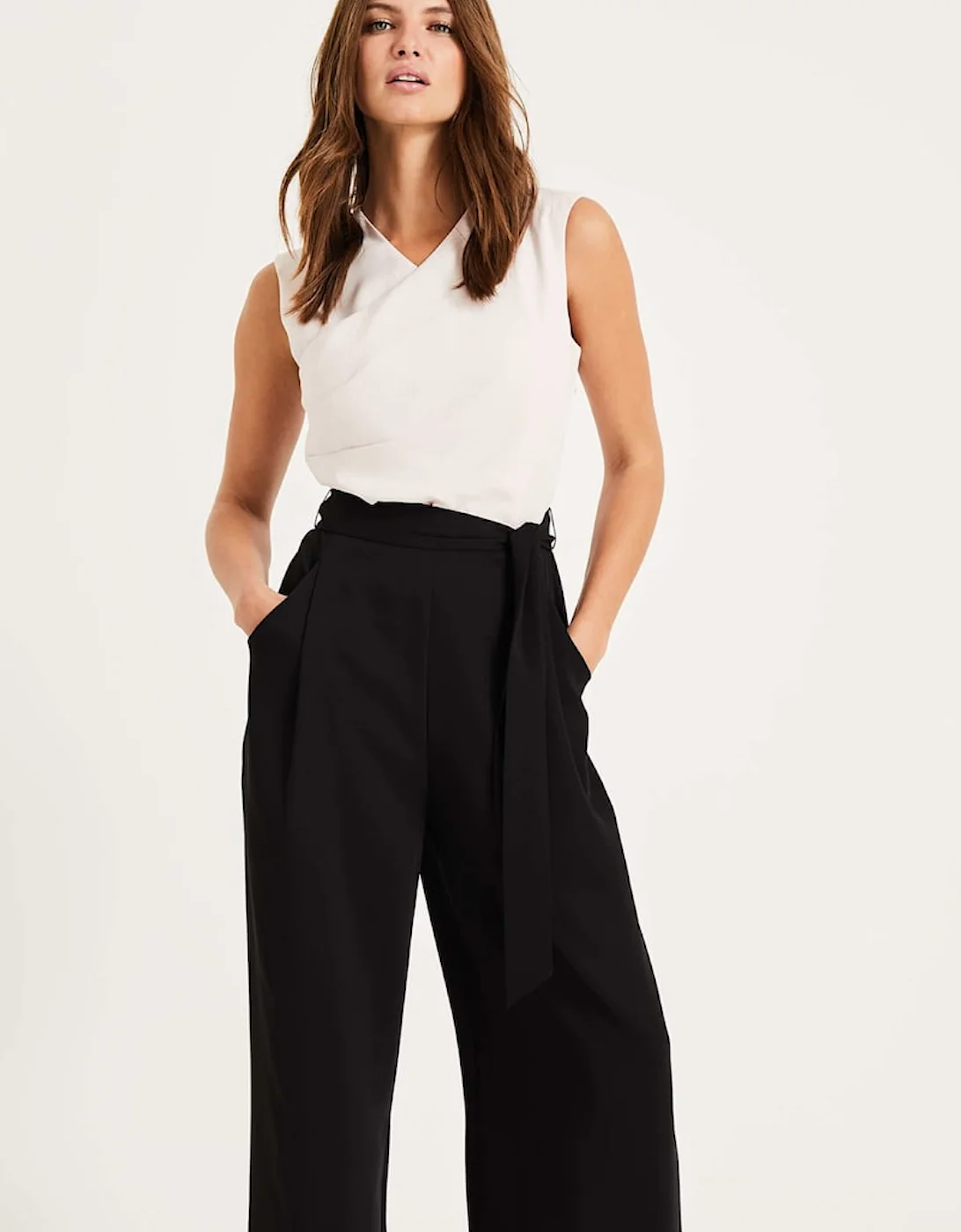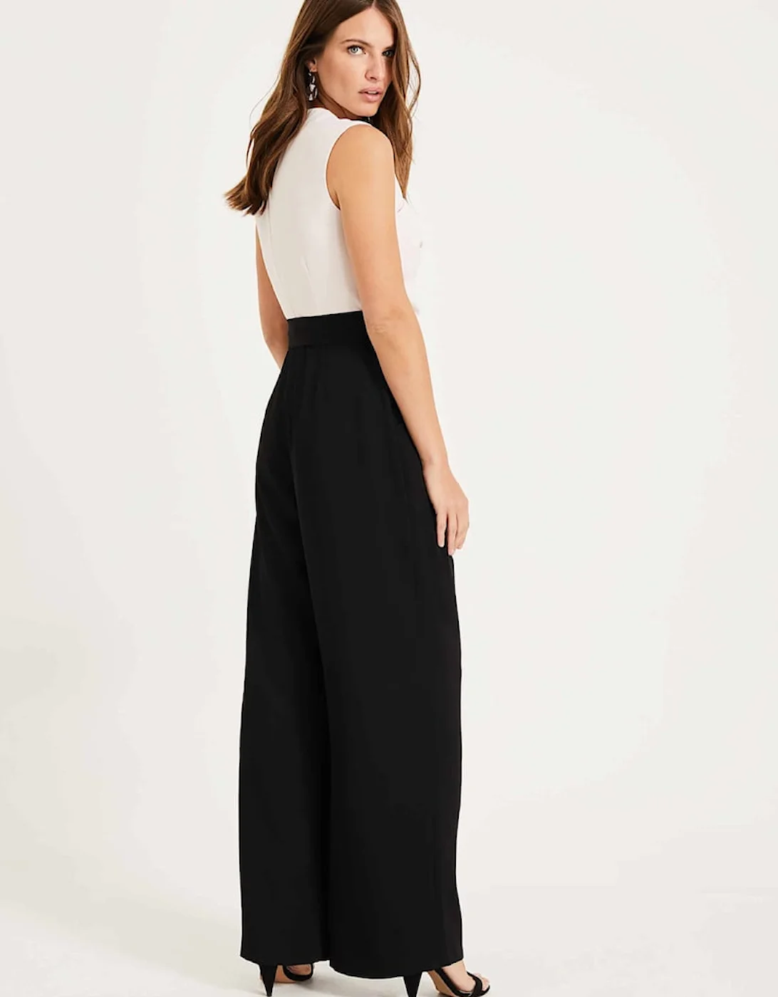 An elegant occasion jumpsuit designed with a contrast bodice with flattering ruching and a contemporary asymmetric neckline. This sleeveless style has a straight leg and is finished with a matching waist tie to enhance the silhouette. Model wears UK size 10 and is 5’7 / 170cm Regular Fit
