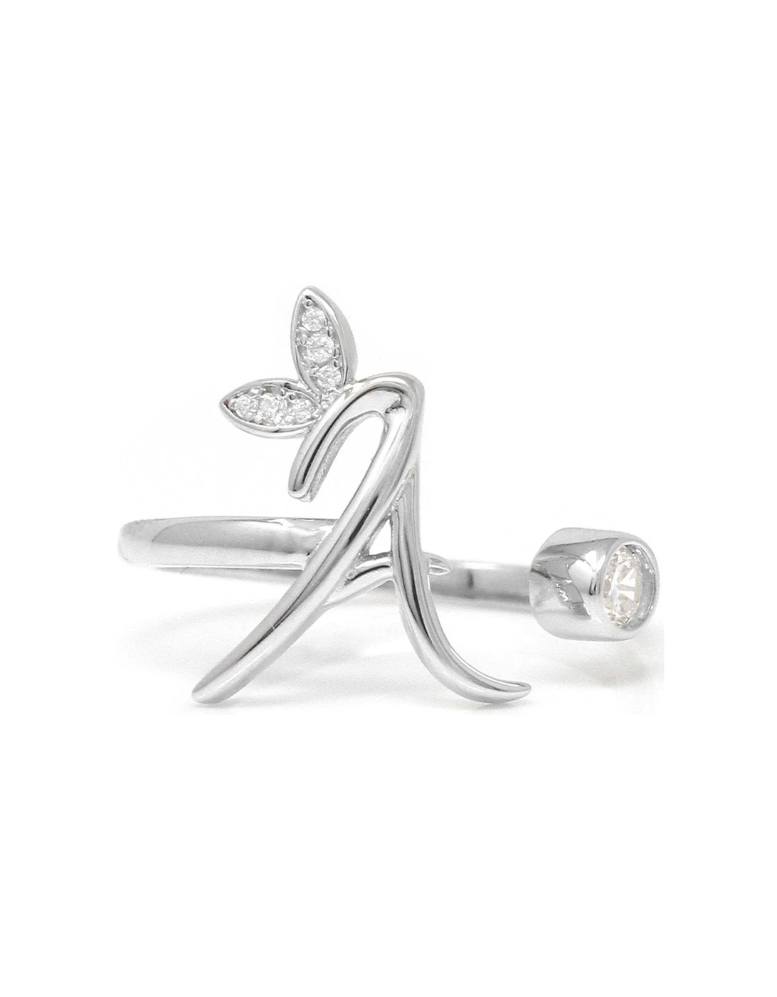 Say It With Diamonds Adjustable Winged Initial Ring – Sterling Silver