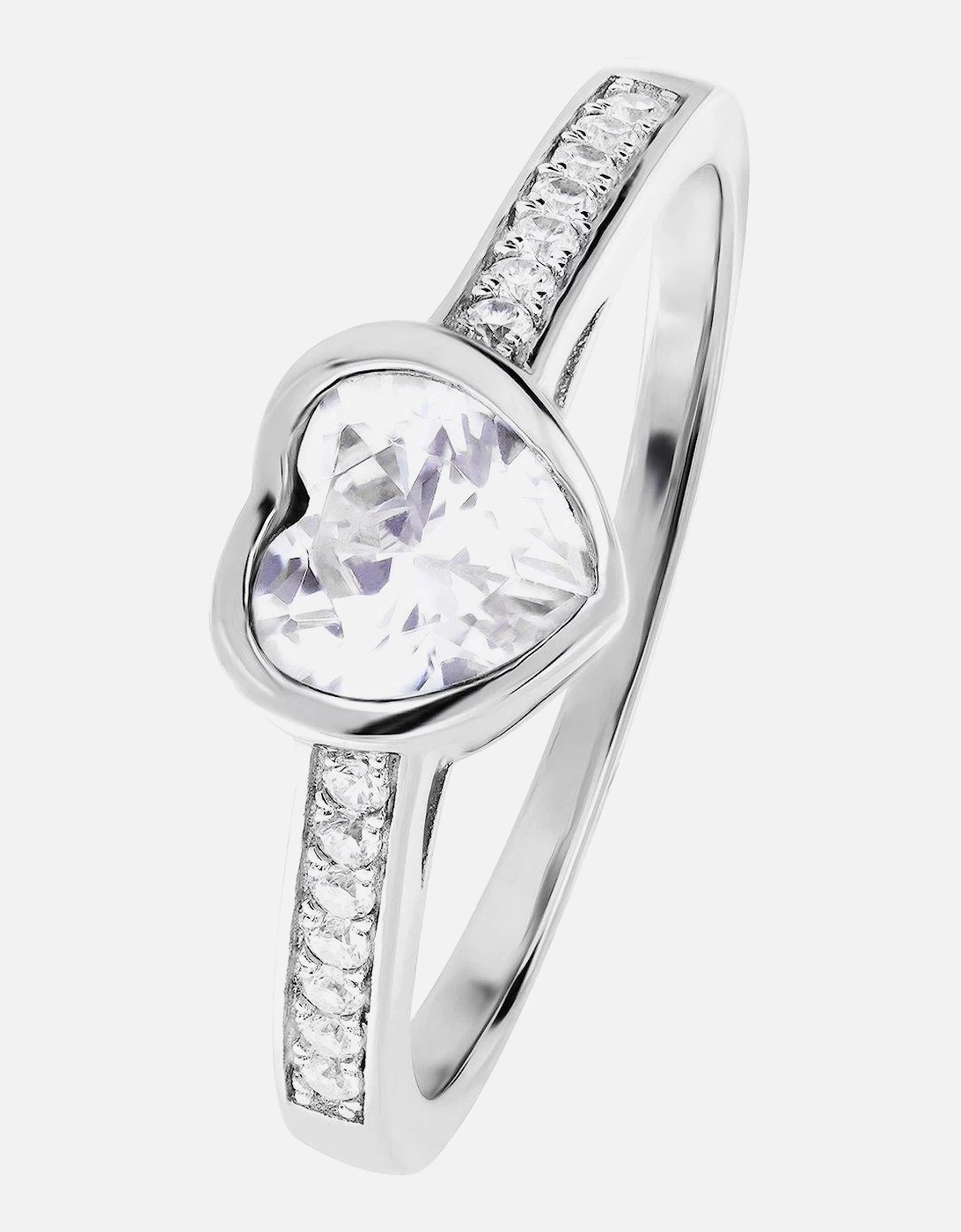 The Love Silver Collection Sterling SIlver Rhodium Plated Cubic Zirconia 6x6mm Heart Ring