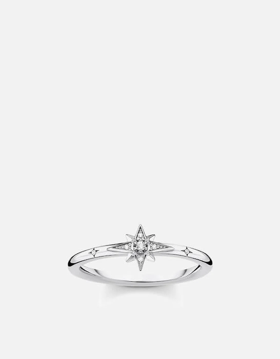 Thomas Sabo’s ring is inspired by the cosmos and handcrafted from Sterling silver. It’s decorated with a large star in the centre and two small engraved ones either side, which are all encrusted in sparkling white zirconia stones in a pavé setting. The jewellery is presented in a Thomas Sabo gift box and pouch.