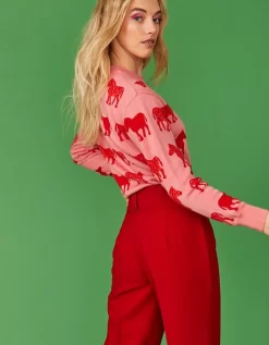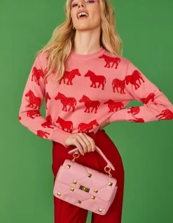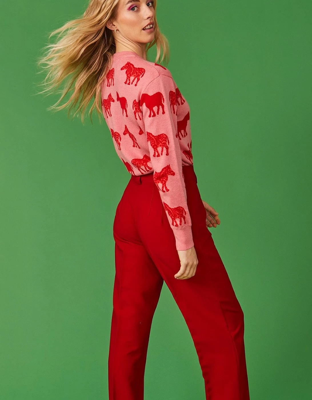Incredibly soft and warm this pink cashmere and eco-friendly banana peel blend cardigan features an adorable zebra design emblazoned across the front, back and sleeves. This piece will take you through the colder seasons in pure style and comfort.
